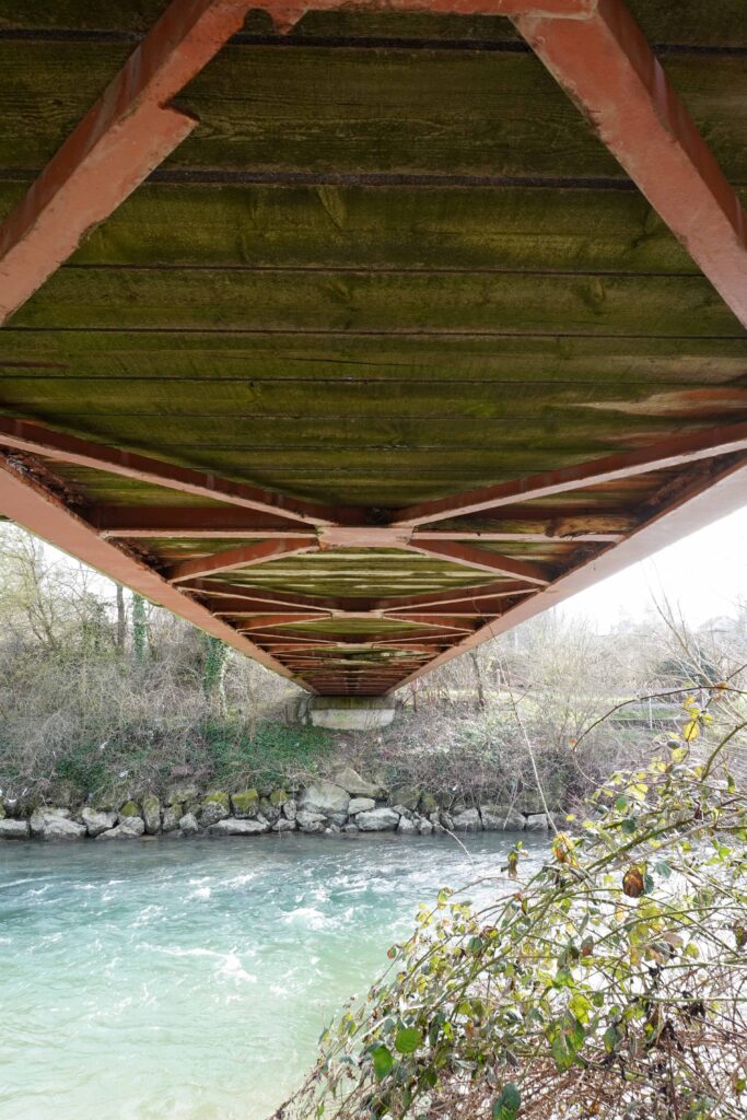 Démantèlement de la passerelle dans le cadre d’un projet de protection contre les inondations